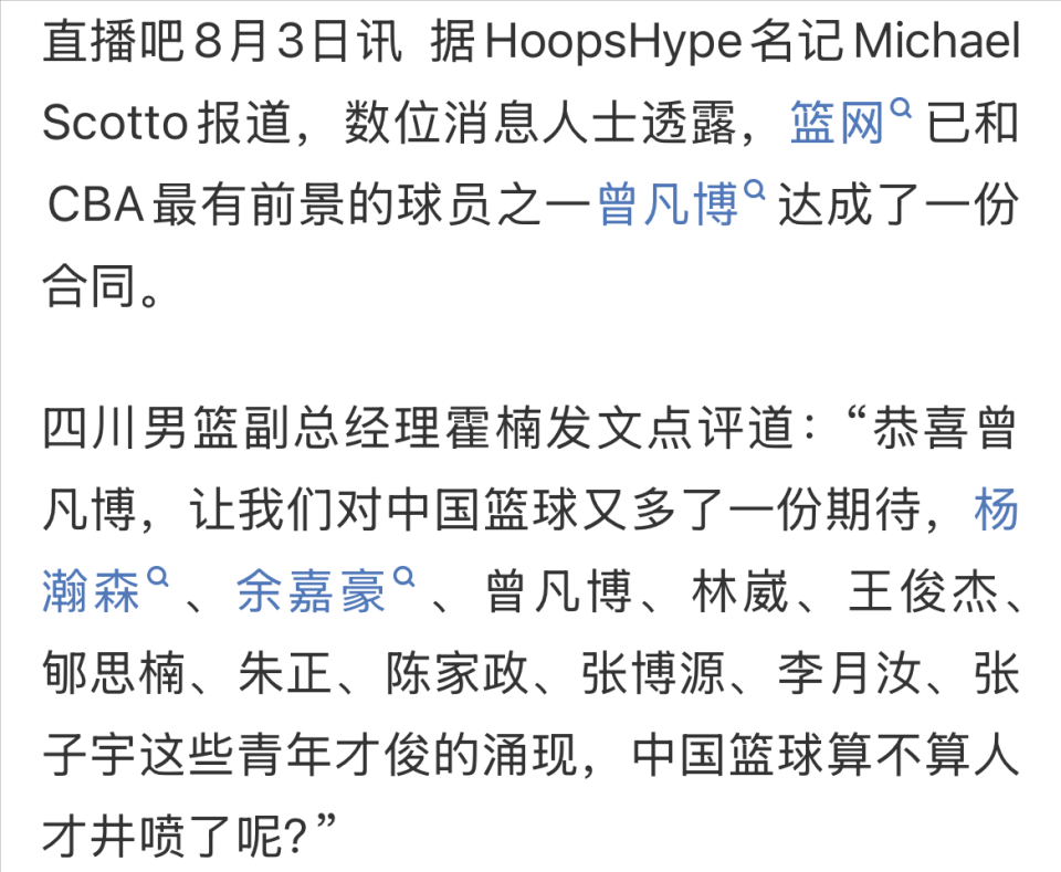 2025年8月3日,据HoopsHype知名记者Michael Scotto报道,多位消息人士透露,CBA最有前景的球员之一曾凡博已与NBA布鲁克林篮网达成一份合同。这一消息不仅引发了国内媒体和球迷的极大关注,也将中国篮球青训、人才现状以及未来前景再次推到舆论中心。